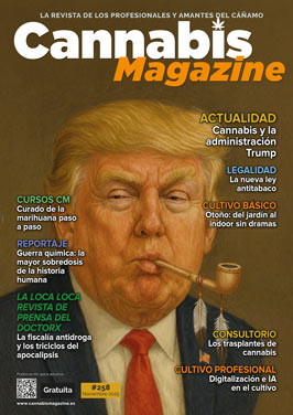 NUMERO 258 Cannabis y la administración Trump Curado de la marihuana paso a paso Digitalización e IA en el cultivo Los trasplantes de cannabis Otoño: del jardín al indoor sin dramas La nueva ley antitabaco Guerra química: la mayor sobredosis de la historia humana |